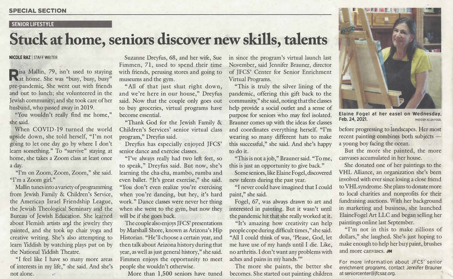 Elaine's photo appears in the Phoenix Jewish News
